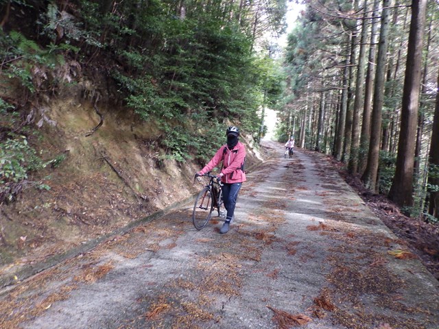 自転車を置いてあるところにもぐりこんでいました。