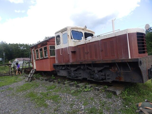 森林鉄道の車両が展示してあり