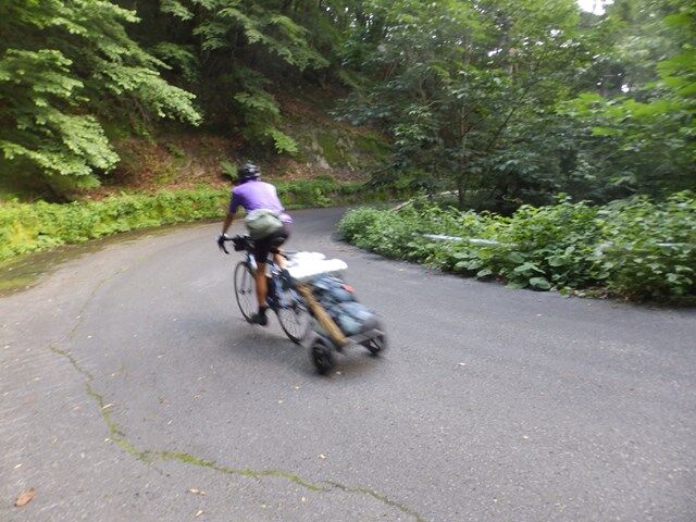 キャンプ場からいきなり激坂がえんえんと続いていやになります。