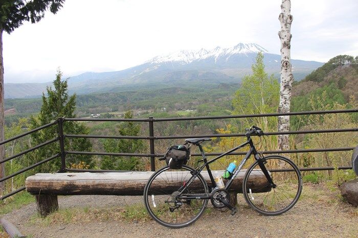 開田高原を走り出すと御岳山(おんたけさん)が どかーーーんと見えて来て