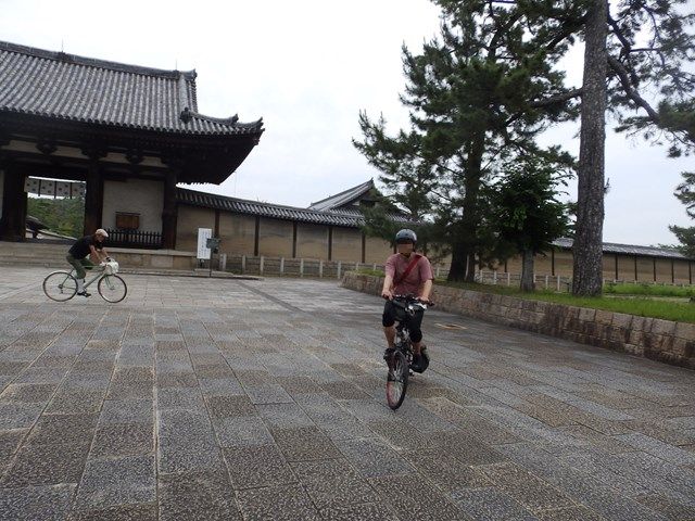 観光客が自転車でまわっていたり