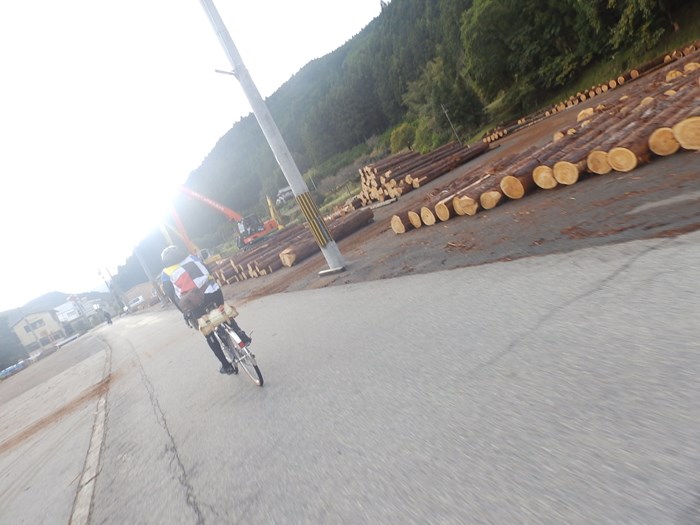 広い広い木材置き場の横を通りました。