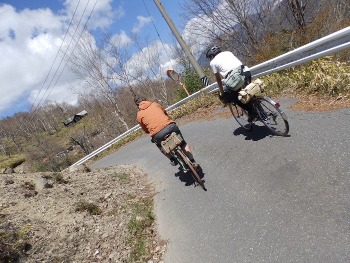 下りに備えてブレーキの利き具合を調整しておられます。↑