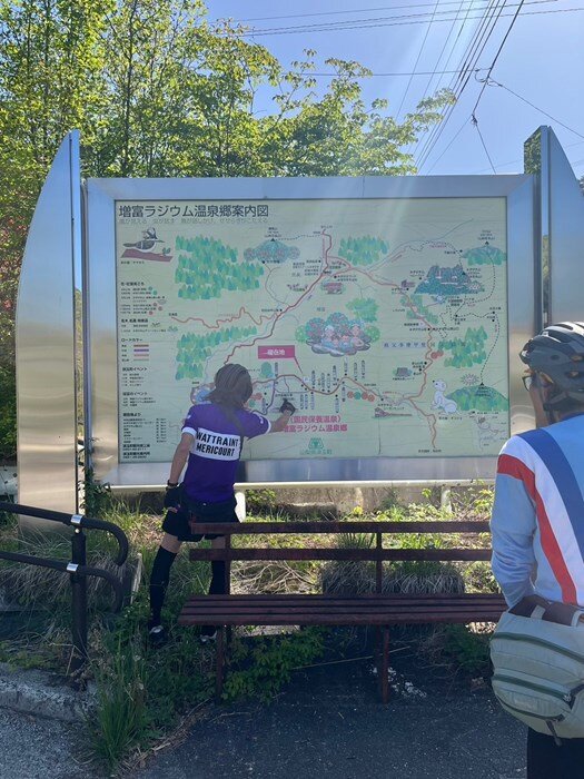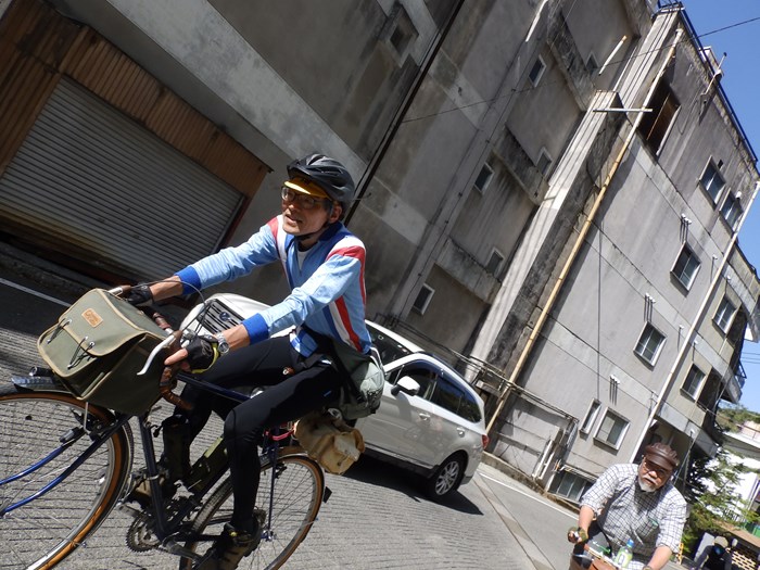 旅館の前で自転車話でなかなか走り出せません(笑)。
