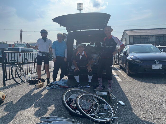 4人乗って4台積んで帰りました。