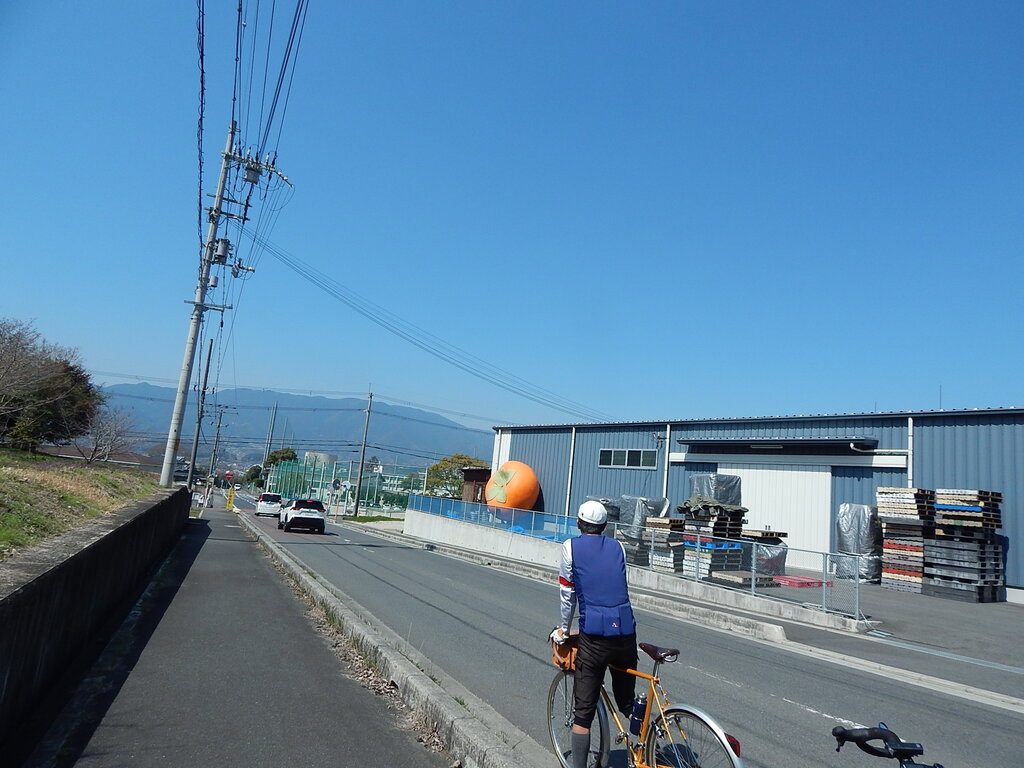 直径3mの巨大な柿のオブジェの有る肥料の会社。