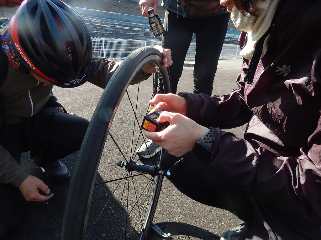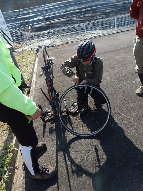 帰り道でKMTさんがパンク。