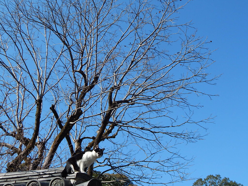 お寺やお家の屋根の上で日向ぼっこしている猫ちゃんをあちらこちらで