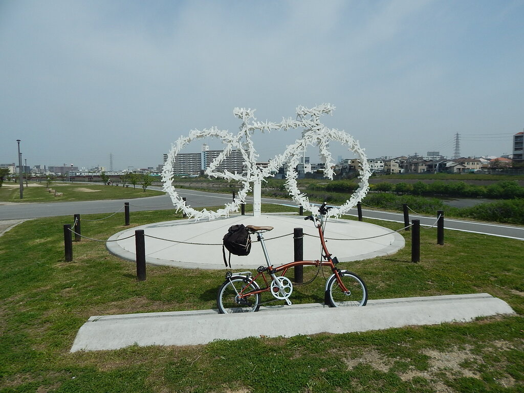 堺市の大和川の自転車モニュメント